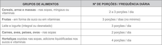 A comida pastosa deve ser ingerida lentamente, e em pequenas porções de cada vez, bem mastigada.