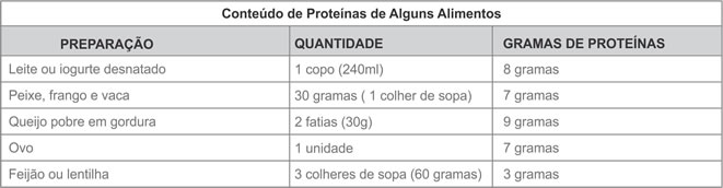 • O paciente nunca deve se esquecer da ingestão de alimentos ricos em proteínas, sua necessidade diária é em torno de 40 a 60 gramas de proteínas ao dia, a seguir segue tabela com alimentos ricos em proteínas;
